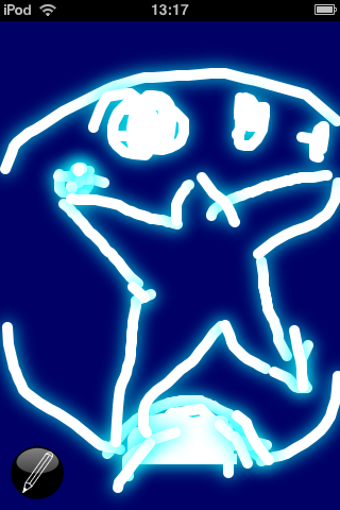 Depois de instalado, o Glow Draw! mostra uma tela negra com as várias opções de fluorescentes. Escolha a cor, o tamanho da caneta e mãos à obra. Ainda que no começo seja um pouco difícil de pegar o jeito do Glow Draw!...